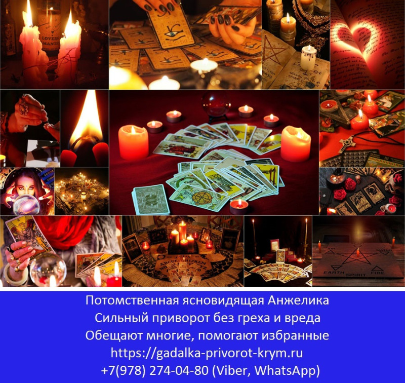 Каждому человеку знакомы условия, когда жизнь зашла в безвыходность и видится, не будет ни малейшего просвета: упадок сил, измены любимых, нелады на службе, бедность, одиночество и печаль. И зачастую не помогают ни психологические тренинги, ни рекомендации друзей и соседей. В таких случаях не затягивайте разрешение задач, если все подходы испробованы протянуть руку помощи в силах только опытная и талантливая ведунья. Ялта, Севастополь, Симферополь - в этих городах Крыма оказывает помощь потомственная гадалка Анжелика. В ее силах не только предсказание судьбы, но и умение скорректировать к лучшему грядущее, а также исправление промахов, допущенных другими магами.