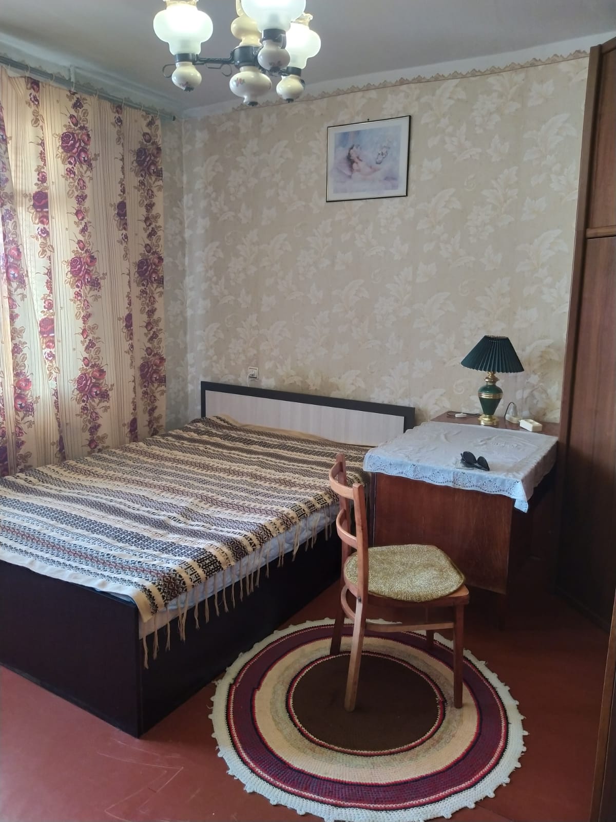Комната 14 кв.м,со своей лоджией . Хорошее жилое состояние ,вся необходимая мебель , спальное место - кровать ,стол ,шкафы и пр.