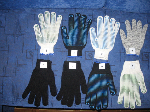 Продам перчатки производственные х/б трикотажные из пряжи высшего сорта,произведенной в Украине подчеркиваю не КИТАЙСКИЕ По вашему желанию может быть добавлена синтетическая нить,для большего сопротивление к износу Усиленная манжета делает фиксацию более плотной и удобной. Для улучшения захвата на внутреннюю часть нанесены полихлорвиниловые точки. Перчатка х/б,с точкой ПВХ 1.20 гр Перчатка х/б,100%,черная 230 текс с точкой ПВХ 1.53 гр Перчатка х/б,100%,белая 230 текс с точкой ПВХ 1.48 гр Перчатка х/б,стрейч 200 текс 1.23 гр Перчатка белая класс 13 1.56 гр Перчатка черная класс 13 1.82 гр Перчатка теплая акриловая 1.63 гр Перчатка теплая двойная акриловая 3.20 гр фото здесь http://io.com.ua/2001708