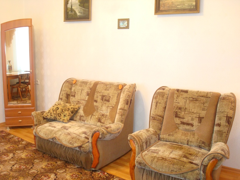 Посуточно двухкомнатная квартира в тихом Центре на ул. Лермонтова люкс класса. Квартира находится рядом с пл.Нахимова, ДОФом, памятником Екатерины. Учень одобна тем кто любит исторический центр Севастополя, но не хочет слышать шума проезжающего транспорта. В квартире кондиционер, стиральная-автомат, микроволновка, отличный ремонт, высокие потолки (3,80), удобная современная мебель, постельное белье, вся необходимая посуда, большой балкон увитый виноградом Изабелла Фото http://www.radikal.ru/users/jinjer/lermontova