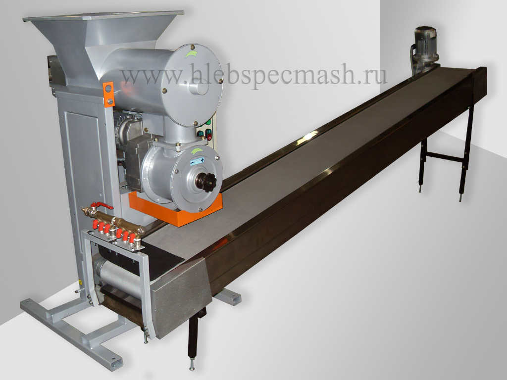 Предназначен для деления теста из ржаной и ржано-пшеничной муки на куски массой 0,25-1,0кг., c регулировкой производительности делительной головки, комплектуется цепным транспортёром для укладки тестовых заготовок в хлебопекарные формы или ленточным транспортёром для приёма тестовых заготовок подового хлеба.