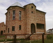 Стены - красный кирпич, внутренние перегородки - саман.