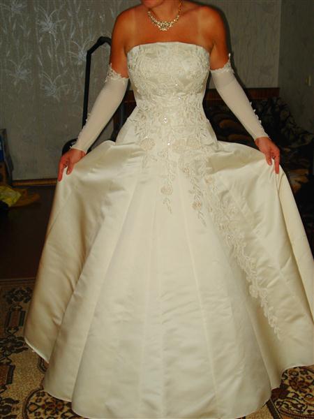 продам платье с перчатками, без криналина! можно одевать под пышный криналин, цвет шампани, размер 42-46, корсет на шнуровке, покупалось новое, одето 1 раз, не венчанное, после химчистки, в отличном состоянии.