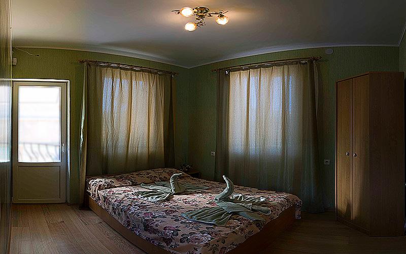 Интерьер: На первом этаже – салон с диваном и телевизором, санузел с душевой кабинкой + оборудованная встроенная кухня. На втором этаже – 3 комнаты ‘пинк’, ‘беж’ и ‘грин’. В двух комнатах по двухспальной кровати, по шкафу и прикроватной тумбочке. В одной комнате 2 односпальные кровати. На этаже санузел с душевой кабинкой. Из окон комнат открывается вид на море. С каждой комнаты есть выход на огромный балкон с мебелью из лозы, где вы сможете насладиться прекрасными моментами заката и видом на Артиллерийскую бухту за чашечкой кофе. Третий этаж – 50кв.м.с панорамными окнами на бухту и центр города – идеальная комната для отдыха для всей семьи. Вся мебель новая, пол на первом этаже – кафельная итальянская плитка, на втором и третьем этажах – ламинат. Стены – обои, фактурная штукатурка. Окна – Стеклопакеты. Горячая вода постоянно – водонагреватель (бойлер Garegnie). Санузлы на двух этажах облицованы в современную кафельную плитку, новая сантехника. Предоставляем красивое постельное белье, полотенца, кухонную утварь. В доме комфортно могут разместиться 6 человек