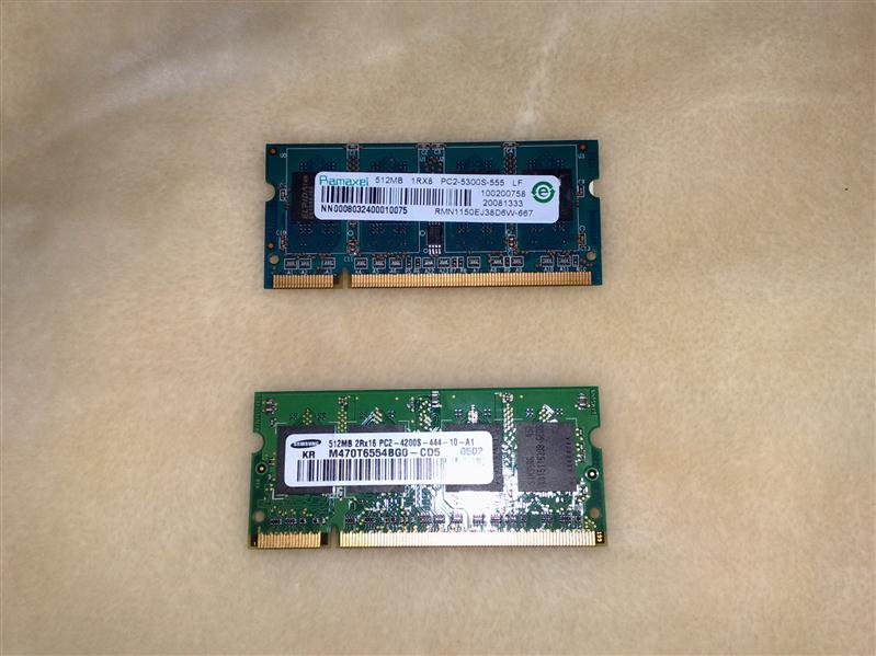 Продаю 2 планки SODIMM DDR2 512Mb 667MHz и 533MHz --- 130 гр и 100 гр соответственно