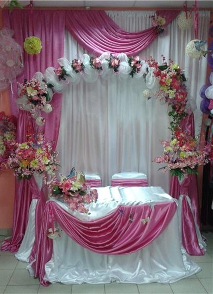 - торжественное оформление банкетных залов с использованием текстиля и цветов (живых и искусственных);