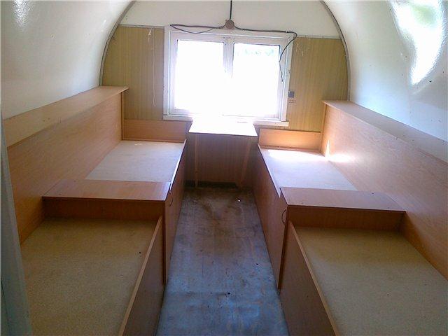 Утепленный вагончик (зимой тепло, летом прохладно) мебелированый, 4 спальных места с 2 мя тумбочками. Столовая, кухня, туалет.