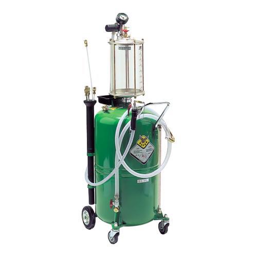 Передвижная пневматическая установка для откачки отработанного масла с прозрачной мерной колбой. Укомплектована индикатором уровня и серией щупов.