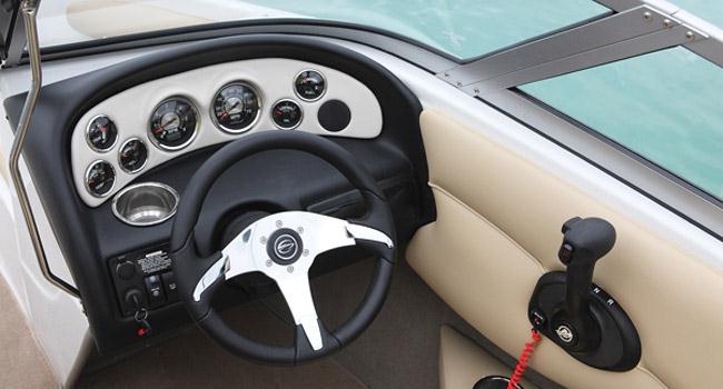 ДвигательMerCruiser 4.3 MPI Мощность, л. с. - 190 Длина, м - 5.5 Ширина, м - 2.33 Масса,кг - 1250 Объем топл. бака, л - 95 Килеватость, град. - 18 Вместимость, чел. - 6.