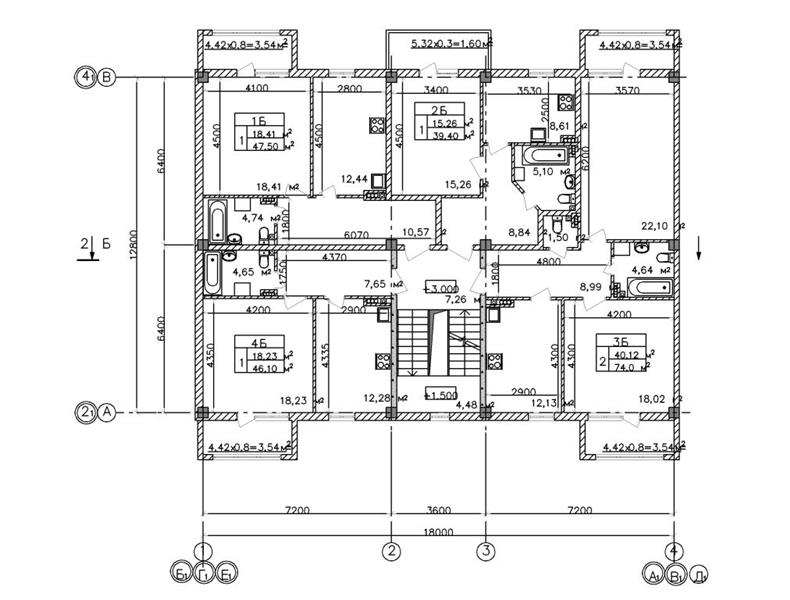Однокомнатная квартира, 39,4 м. кв., этаж 2,3,4, площадь комнаты - 15,26 м.кв., кухня - 8,61 м.кв., стоимость м.кв. 5360 грн.