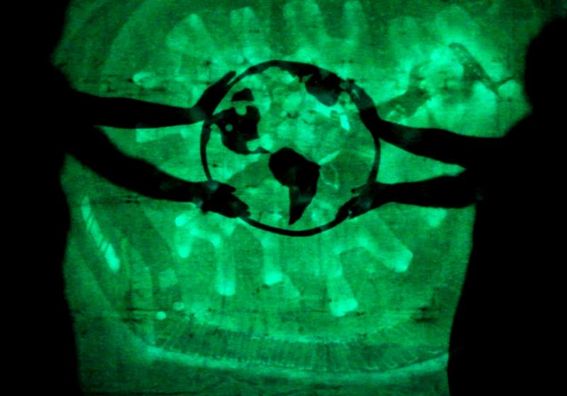 Рисунки светом, песочная анимация, танцующий художник, золотая пудра (#139016)