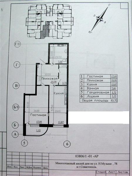 8-й этаж общ-56м, жилая-19,5м, кухня-17,2м, коридор-9,13м, лоджия-3,50м, с/у-4,75м, клодовка-1,40м.