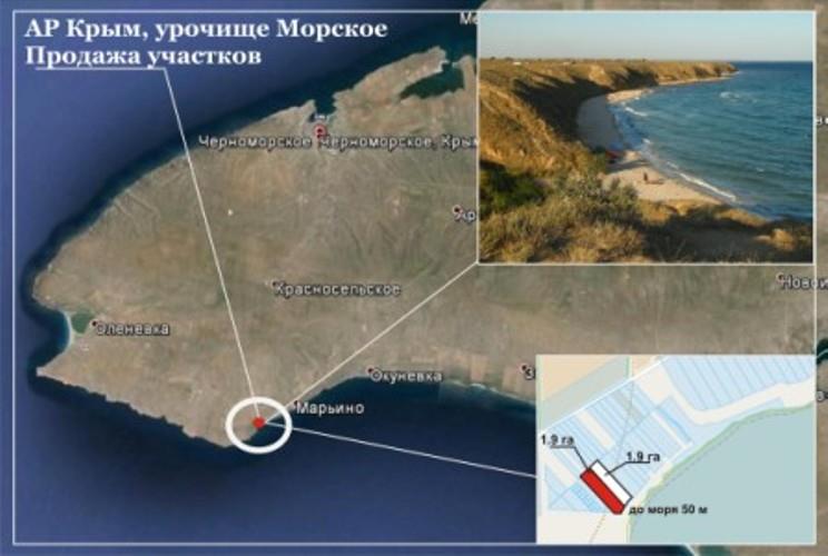 Участок находится в урочище Морском между сёлами Оленевка и Марьино. Расстояние до с. Марьино 2км, пгт. Черноморское 19 км, г. Евпатории 77км.