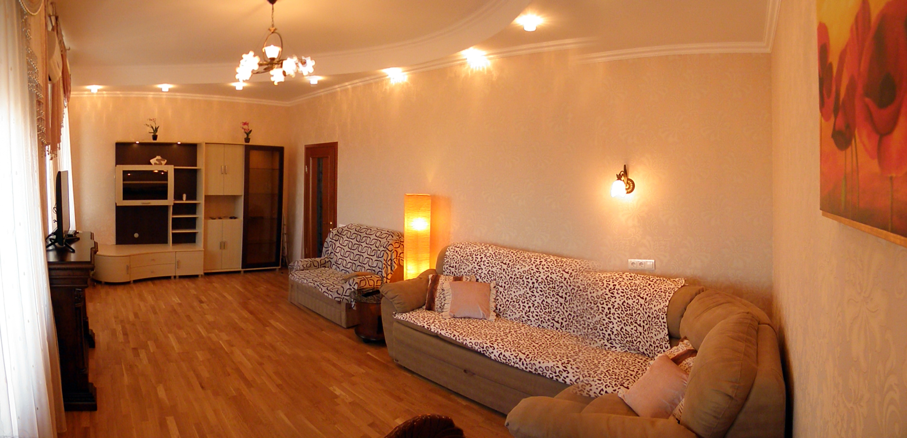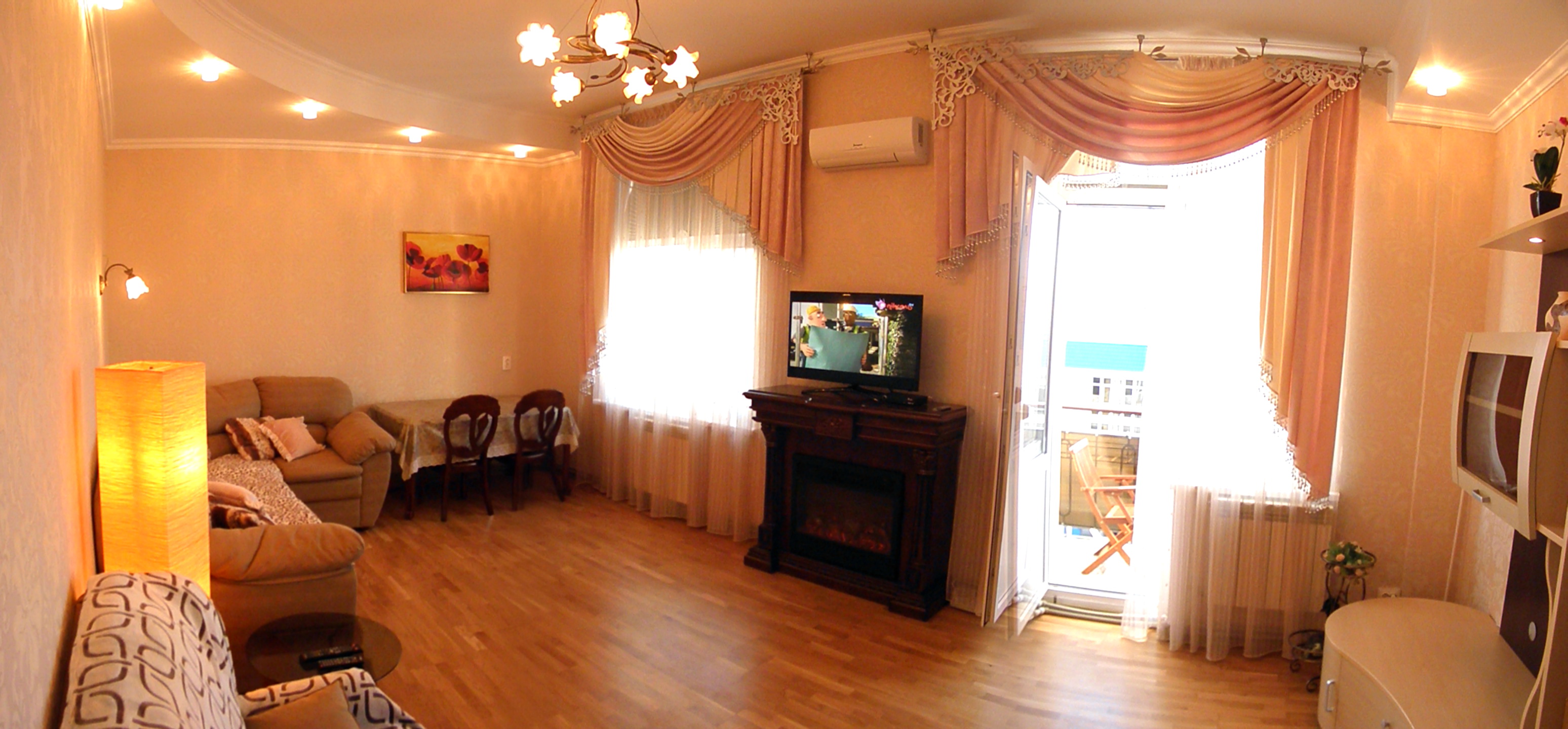 Сдаётся посуточно новая 2-х комнатная квартира (70м²) в 300-х метрах от моря на 5 человек. Квартира расположена в пляжной зоне парка Победы. Комнаты раздельные: гостиная с балконом (вид на море) и спальня. В гостиной имеются двуспальный диван и полуторное кресло-кровать. В спальне - двуспальная кровать. В квартире новая мебель, кондиционеры, горячая и холодная вода круглосуточно, автономное отопление (двухконтурный котёл), эл. камин, газовая плита, эл. духовка, микроволновая печь, холодильник, кулер для воды, стиральная машина-автомат, эл.чайник, утюг, фен, спутниковое ТВ в каждой комнате, Wi-Fi интернет, санузел с «тёплым» полом (большая душевая кабина), посуда, постельное белье. Подъезд с домофоном, закрытая парковка под домом. Уборка квартиры и смена постельного белья раз в 5-7 дней. Возможна встреча в аэропортах и на вокзалах Севастополя и Симферополя. Цена: ноябрь – апрель – 50$; май, октябрь - 60$; июнь, сентябрь – 80$; июль, август – 100$. В праздничные дни цена договорная. Минимальный срок от 3-х суток.