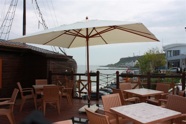 -материал изготовления зонта – тропическая порода дерева Kempas, оттенок – тик.