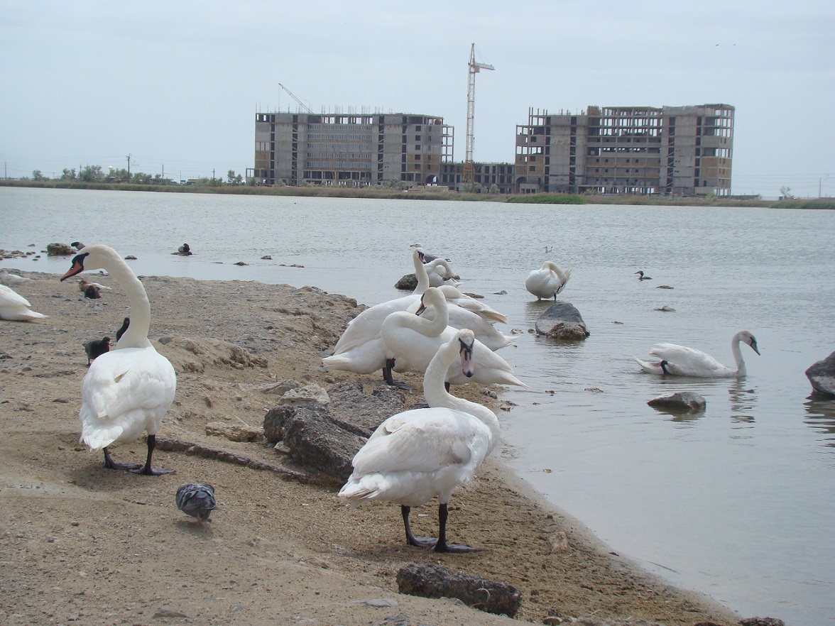 В комплексе "Золотые пески" продаётся квартира-студия с живописным панорамным видом на Крымские горы и озеро Сасык-Сиваш, знаменитое с античных времен своими лечебными грязями и добычей соли. Недалеко от озера располагается небольшой водоём, где обитают белые лебеди.