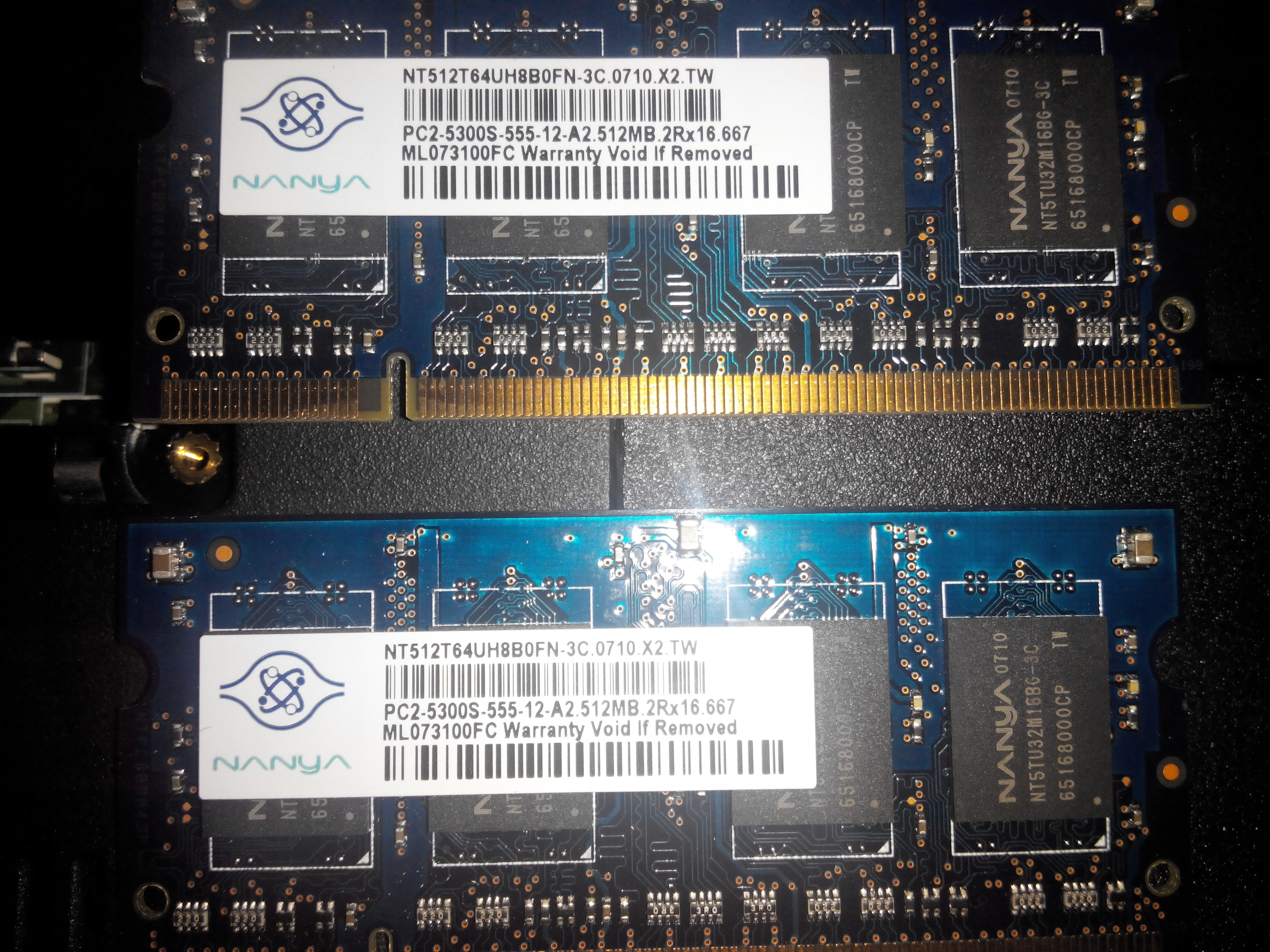ОЗУ для ноутбука.Производитель Nanya Technology Japan( NT512T64UH8B0FN-3C) SODIMM DDR2 667 МГц, 5300 Мб/с, 2 планки по 512 Мб,в отличном состоянии,фото как есть.цена 300 руб РФ