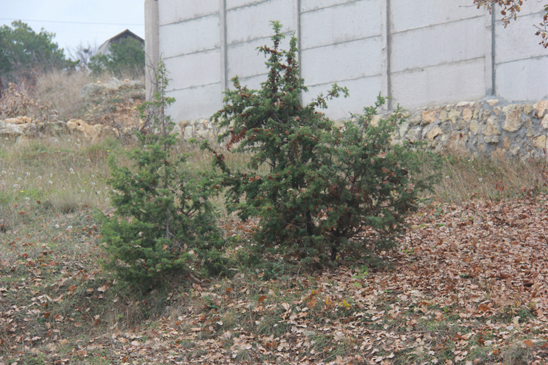 Небольшой уклончик, который абсолютно не помешает строительству. На участке чудесный Дуб и можевельники, границы участка обозначены.