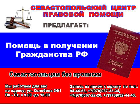 Юристы Севастопольского Центра Правовой Помощи окажут Вам квалифицированную правовую помощь в вопросе получения гражданства Российской Федерации.