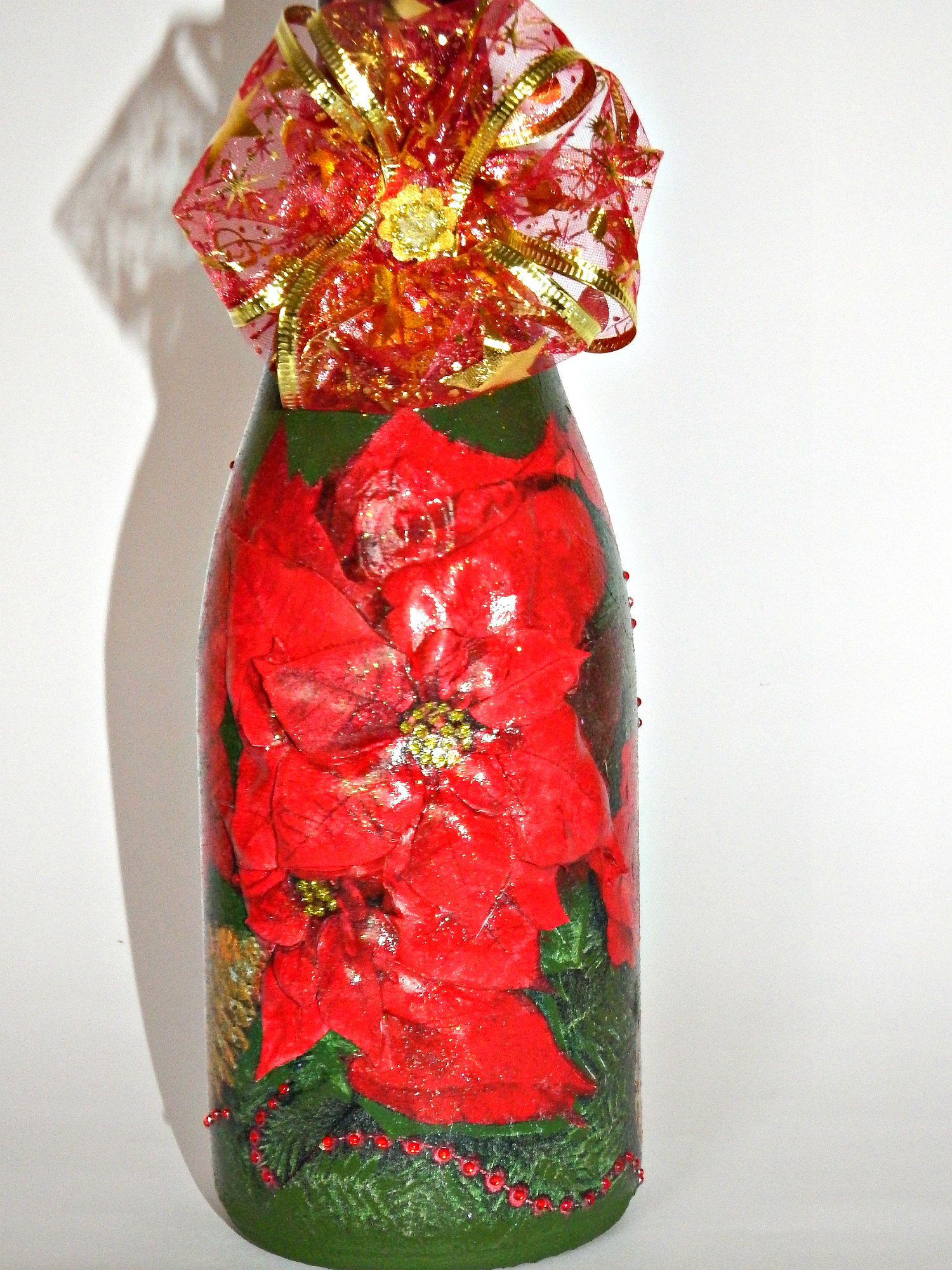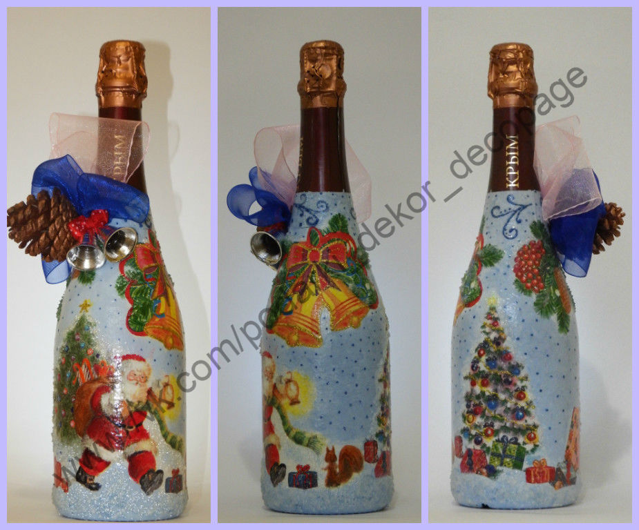 Декор новогоднего шампанского выполнен в технике декупаж с использованием декоративных элементов.Сделаю на заказ.