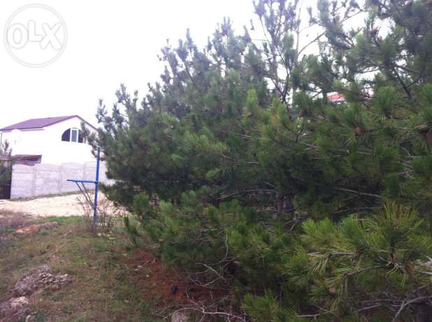 На участке растут крымские сосны.
