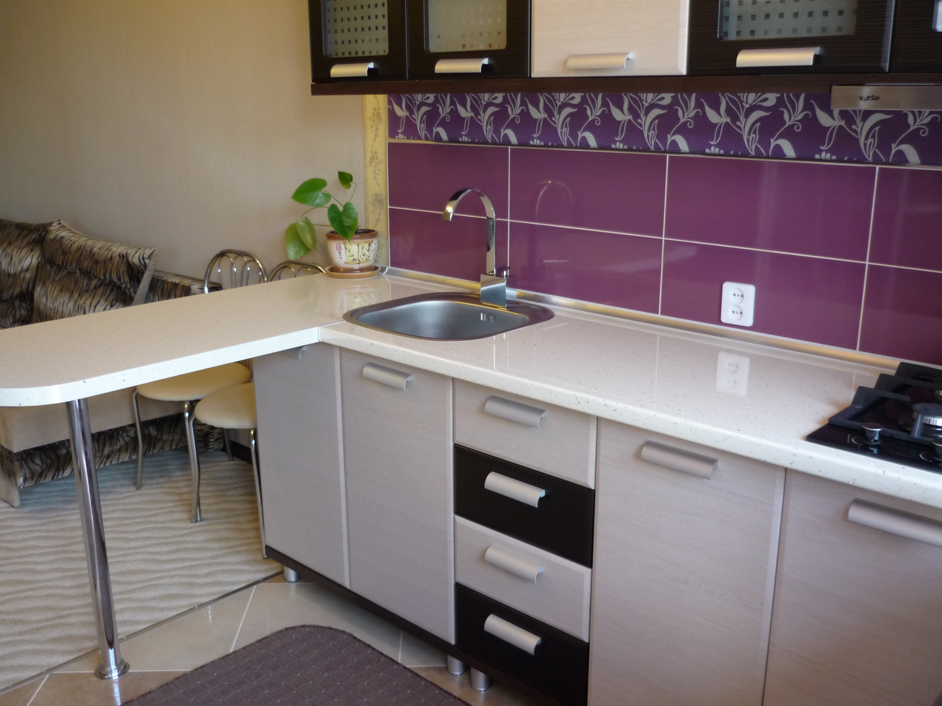 1. полностью оборудованная кухня: встроенная газовая плита, микроволновка, холодильник, эл. чайник, посуда;