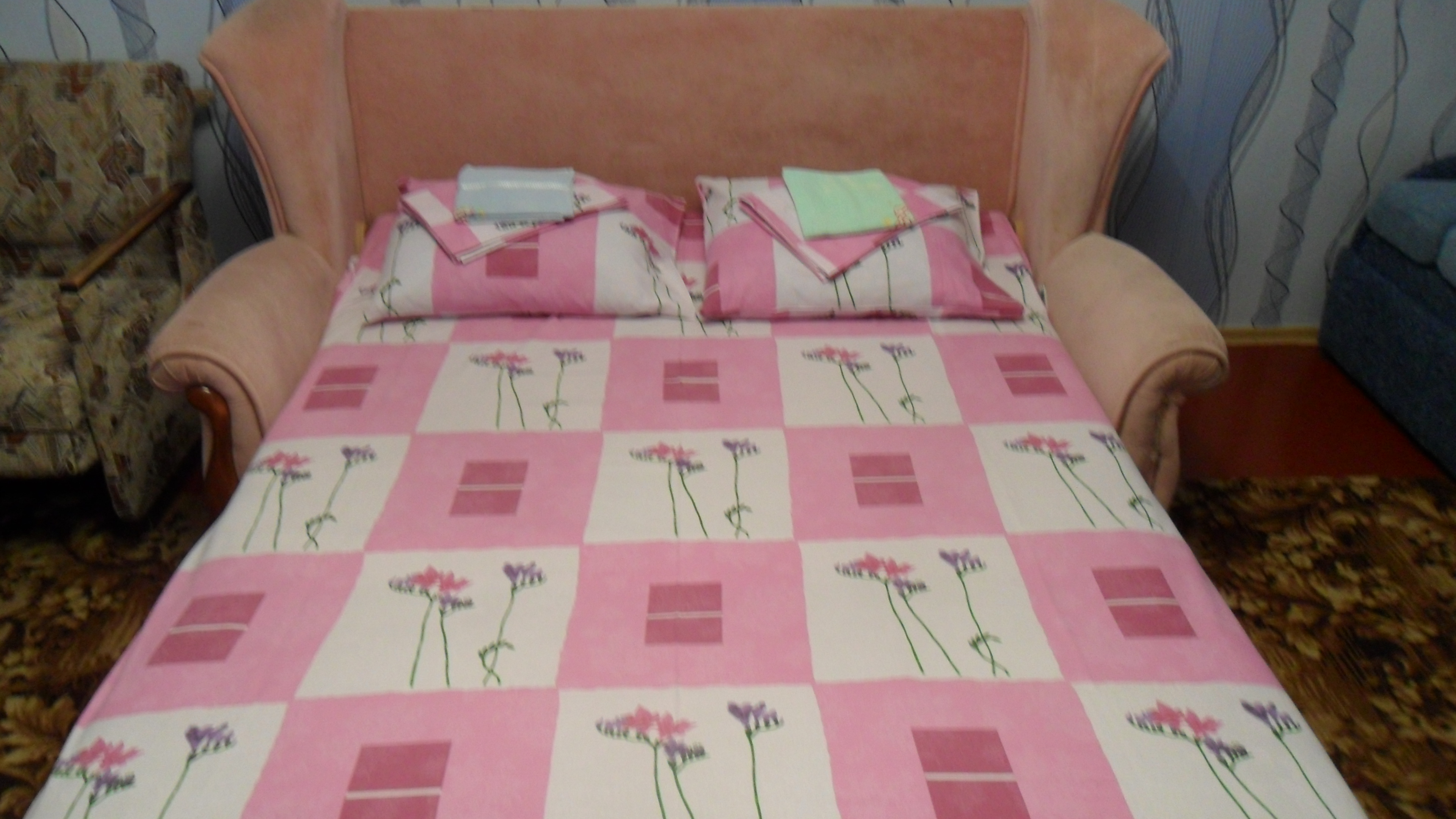 В квартире сделан чистый ремонт, в комнате находится мягкий раскладной диван, на котором удобно будет отдохнуть и днем и ночью. Кроме того, в комнате находится мягкое кресло, журнальный столик, тумбочка, телевизор и кондиционер. В ванной комнате находится ванна, зеркало, душ. К услугам гостей квартиры – горячая и холодная вода, которая идет круглосуточно.+79787675785