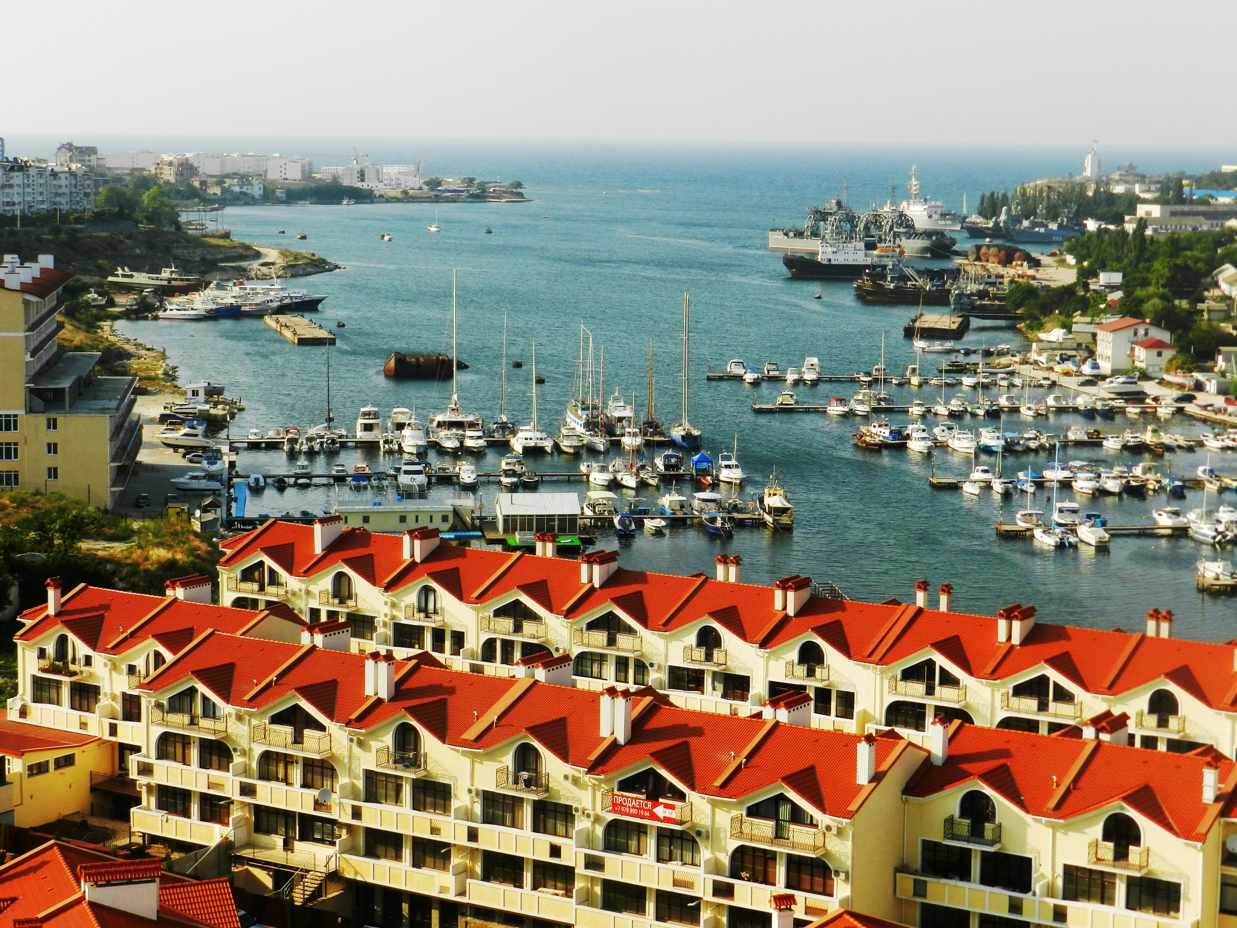 Вид из окона на бухту под названием «Стрелецкая» , наполненная яхтами и лодочками она напоминает тихие бухты Италии . А в дали простираются бесконечные просторы черного моря по которому ходят корабли и парусники . Во дворе детская площядка , рядом школа, магазин, рынок, спортзал, дом имеет свою бесплатную автомобильную парковку с видио наблюдением.