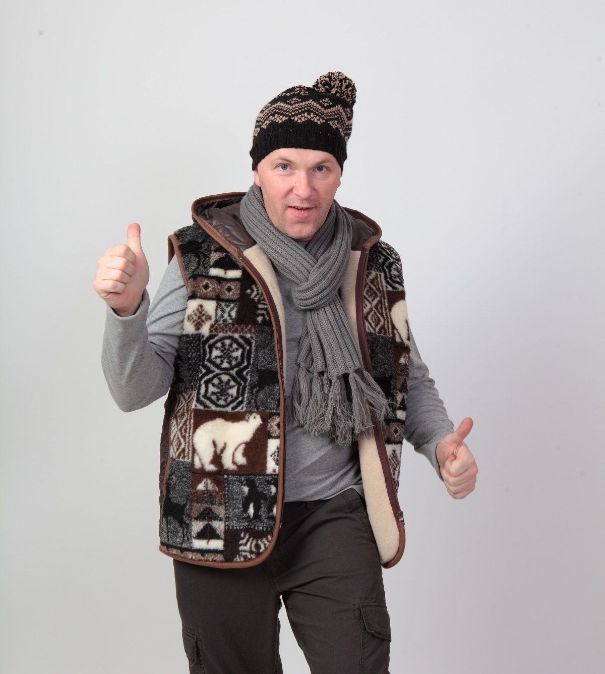 Расцветка приятная, неброская, но при этом интересно смотрится. Жилетка из шерсти очень удобна, ее размеры позволяют носить ее и поверх свитера, и поддевать под куртку в более прохладную погоду. Сделана из натуральных материалов – жилетка из шерсти способна помочь в борьбе с ревматизмом и качественно согреть сухим теплом натруженную после физических нагрузок спину. Купить мужскую жилетку из шерсти легко – достаточно позвонить по указанному телефону или оставить заявку на электронной почте.