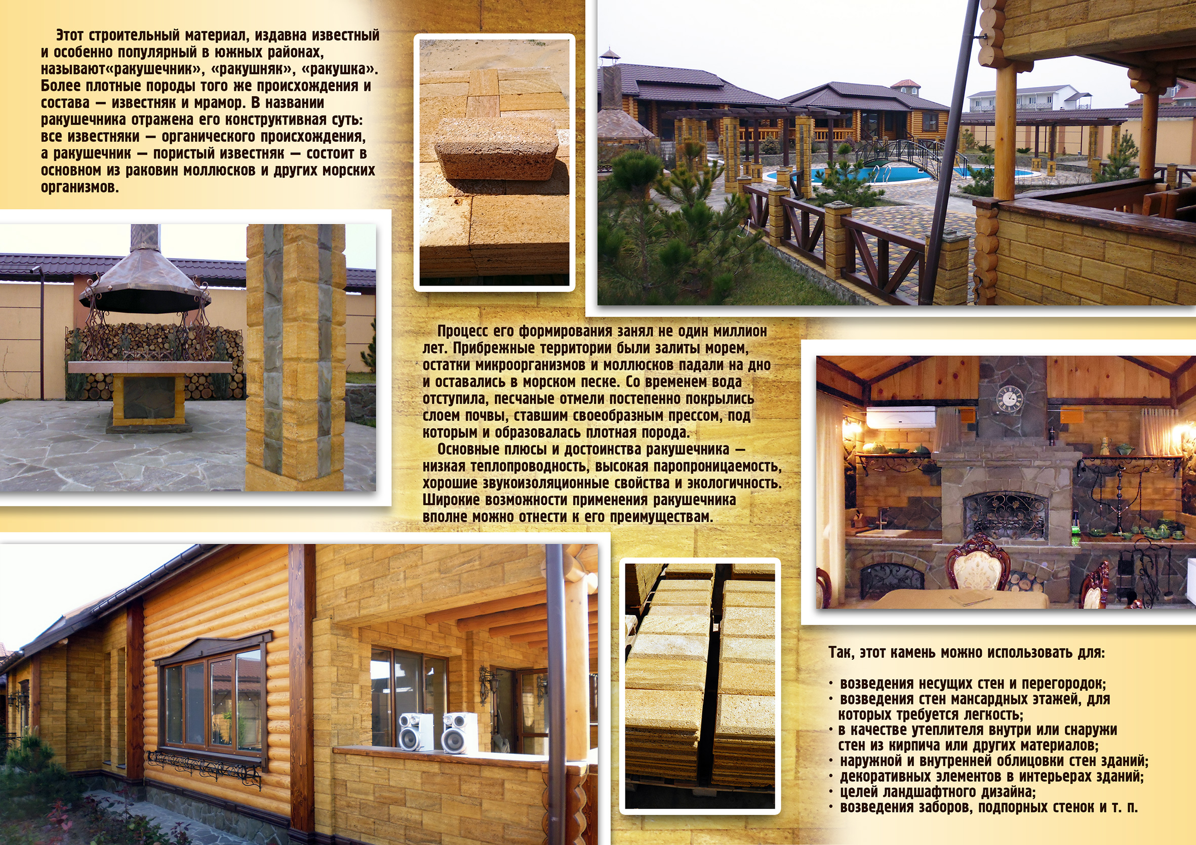 Предлагаем к Вашему вниманию плитку-ракушечник и блок-ракушечник из натурального крымского камня. Плитка из ракушечника широко используется для наружной и внутренней отделки зданий, а так же декоративной отделки архитектурных элементов (балясин, пилястров, каминов, лестниц и др. ). Облицовка плиткой из ракушечника это недорогой вариант защитить дом от воздействия внешней среды, а также придать ему нарядный и законченный вид, создав некую внешнюю и внутреннею теплоизоляцию.Данный вид материала является полностью природным и может быть нескольких видов: полированная, бучардированная и с пиленой фактурой.