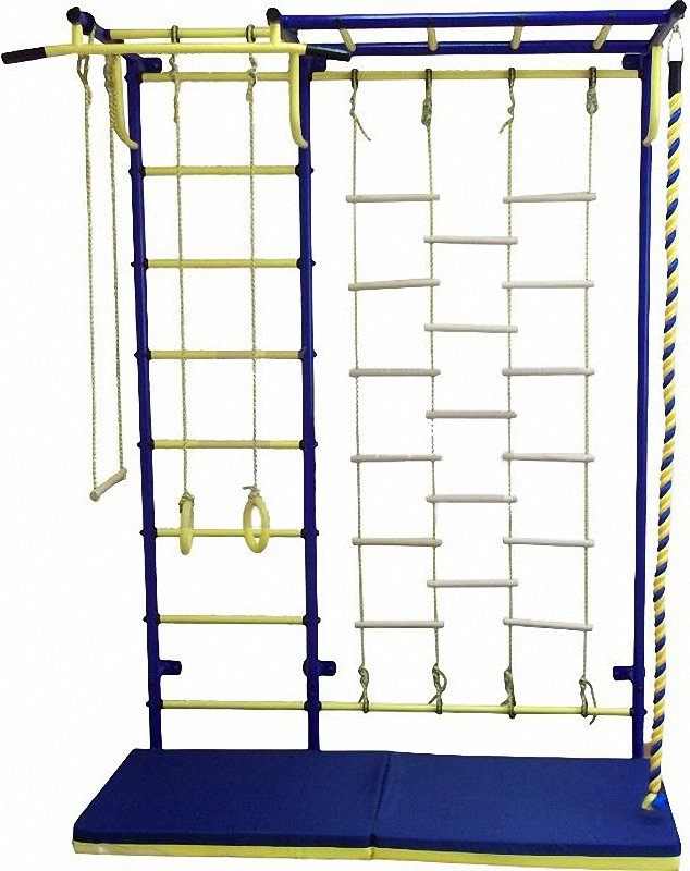 Шведская стенка с рукоходом и лестничной гладиаторской сеткой. Канат, трапеция, кольца гимнастические, сетка для лазания. Размещение сетки для лазания возможно как с правой, так и с левой стороны. Максимальная нагрузка 100 кг; пластиковое покрытие перекладин. Подробней на www. sportstenki. com.