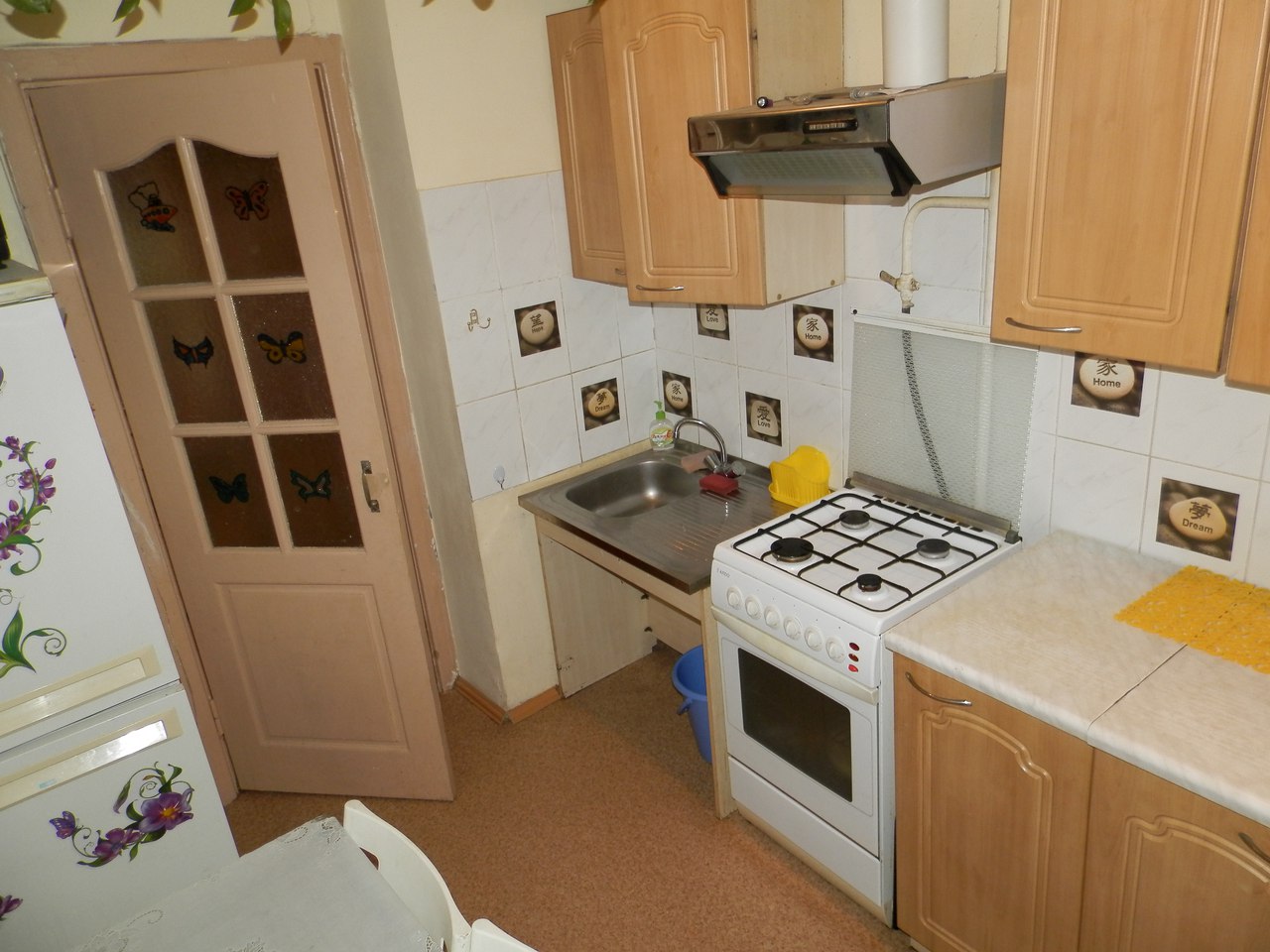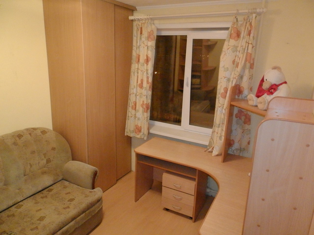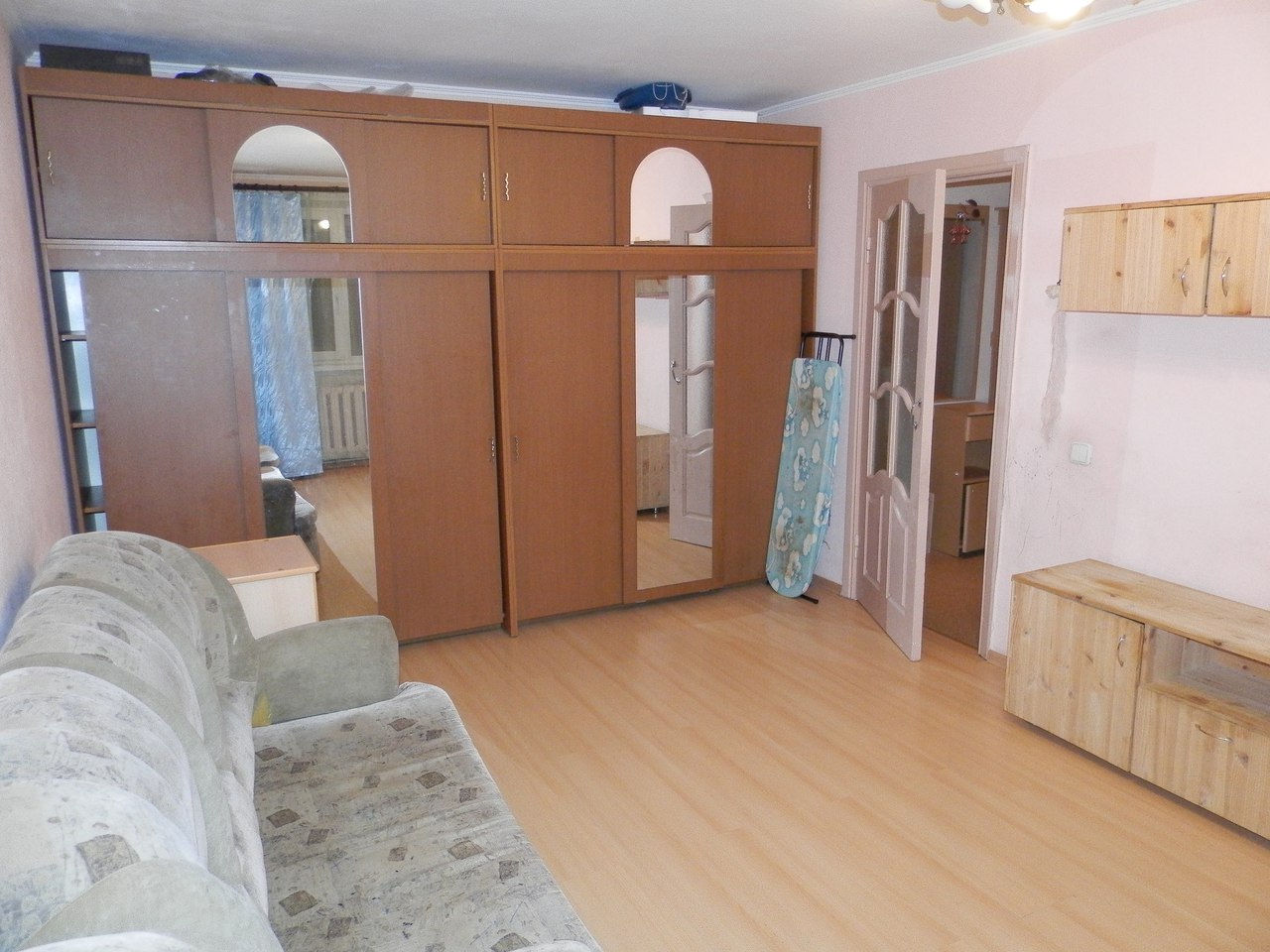 В квартире большой шкаф во всю стену, хорошая мебель и техника, квартира очень уютная и теплая. Рядом удобная транспортная развязка, напротив магазин Новус.