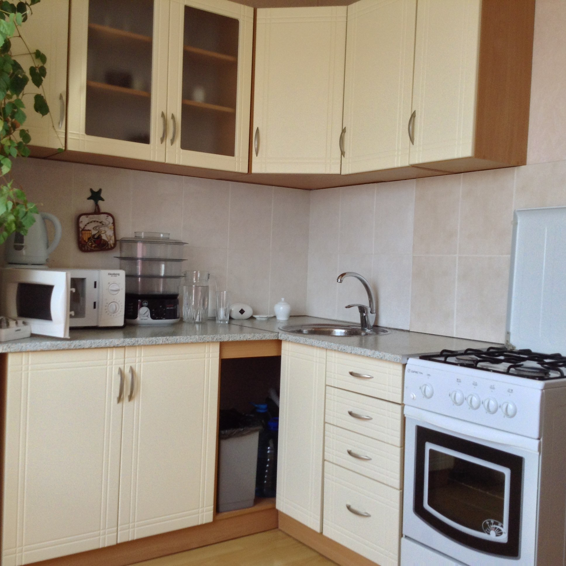 Светлая и чистая квартира в Парке Победы, в зале широкий раскладывающийся угловой диван, стенка с жк-телевизором, wi.fi, на кухне микроволновая печь, электрочайник, в ванной комнате стиральная машинка, квартира полностью готова к проживанию.