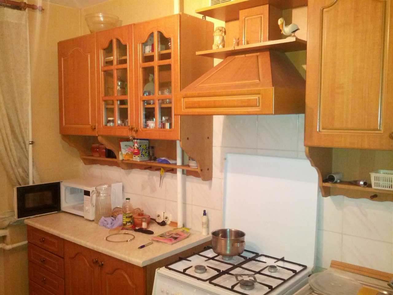 район с развитой инфраструктурой, остановка транспорта в нескольких метрах от дома, в квартире есть всё самое необходимое для жизни, поклеены новые обои, на кухне микроволновая печь, электрочайник.