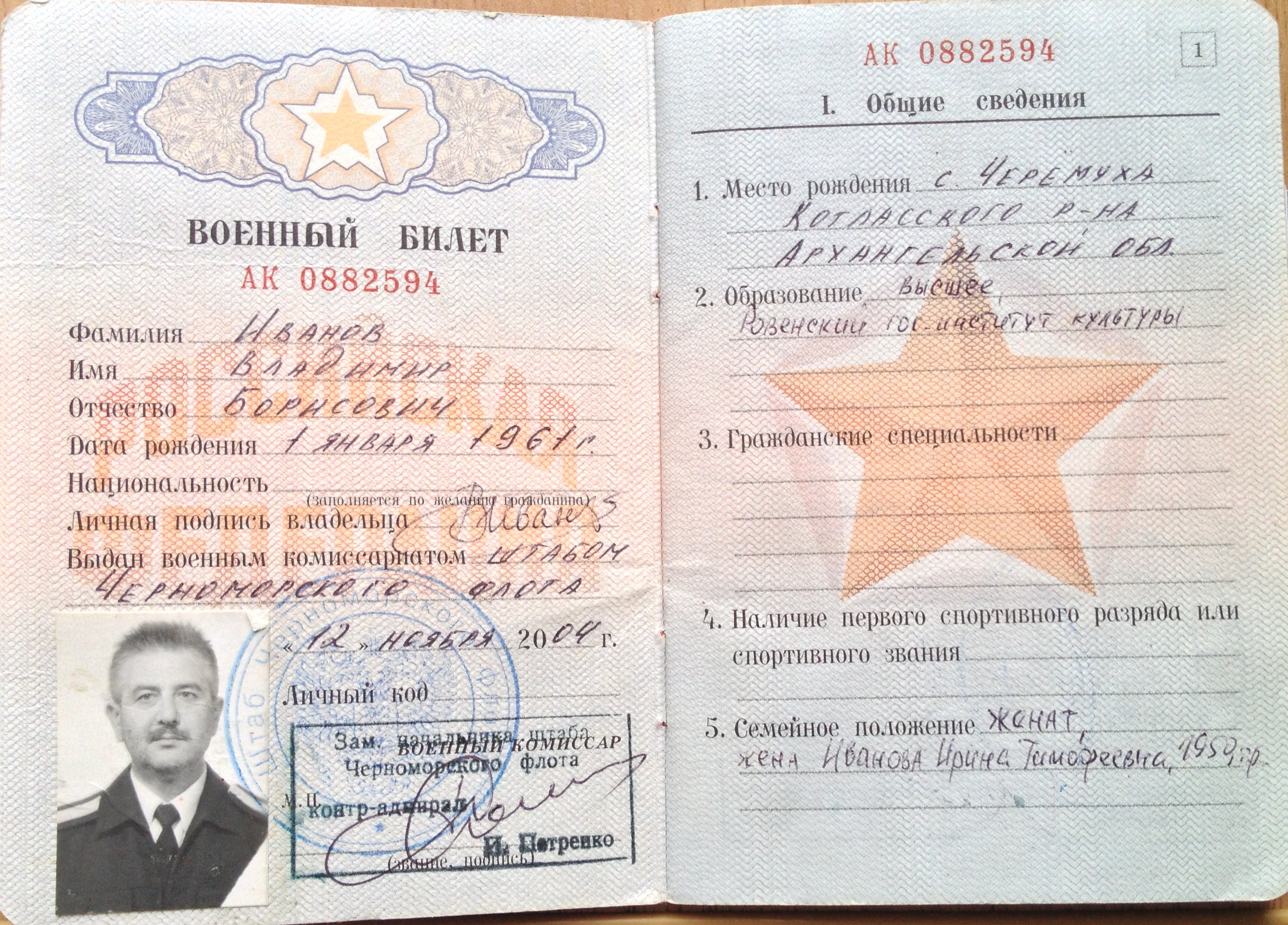 Утерян военный билет (в обложке "Водительские права") и удостоверение ветерана воинской службы на имя Иванов Владимир Борисович. Буду признателен тому, кто за вознаграждение вернёт документы.