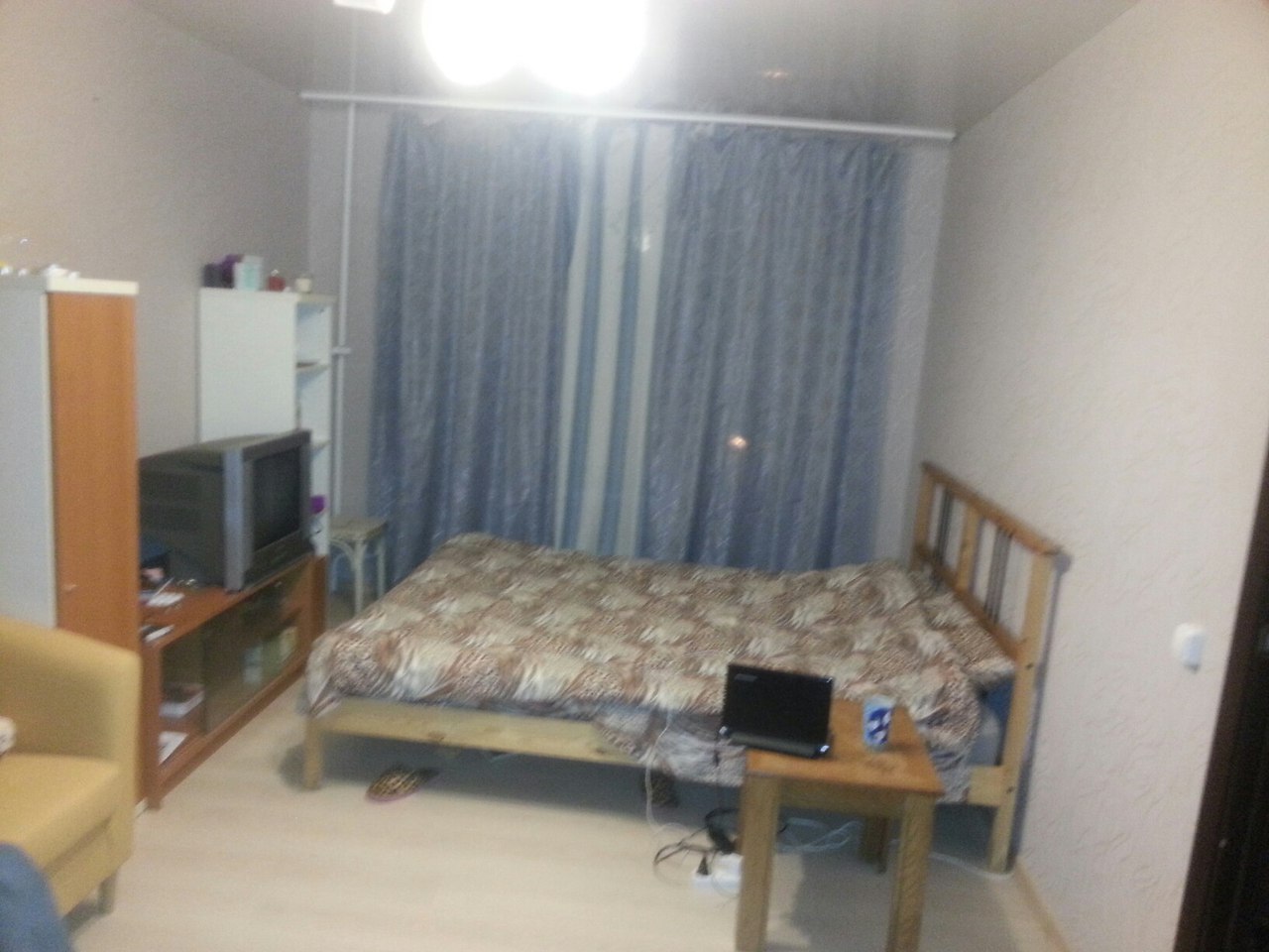встроенная кухня, телевизор, холодильник, стиральная машина автомат, двух спальная кровать, натяжной потолок, стекло-пакет, отличное состояние, на длительный срок.