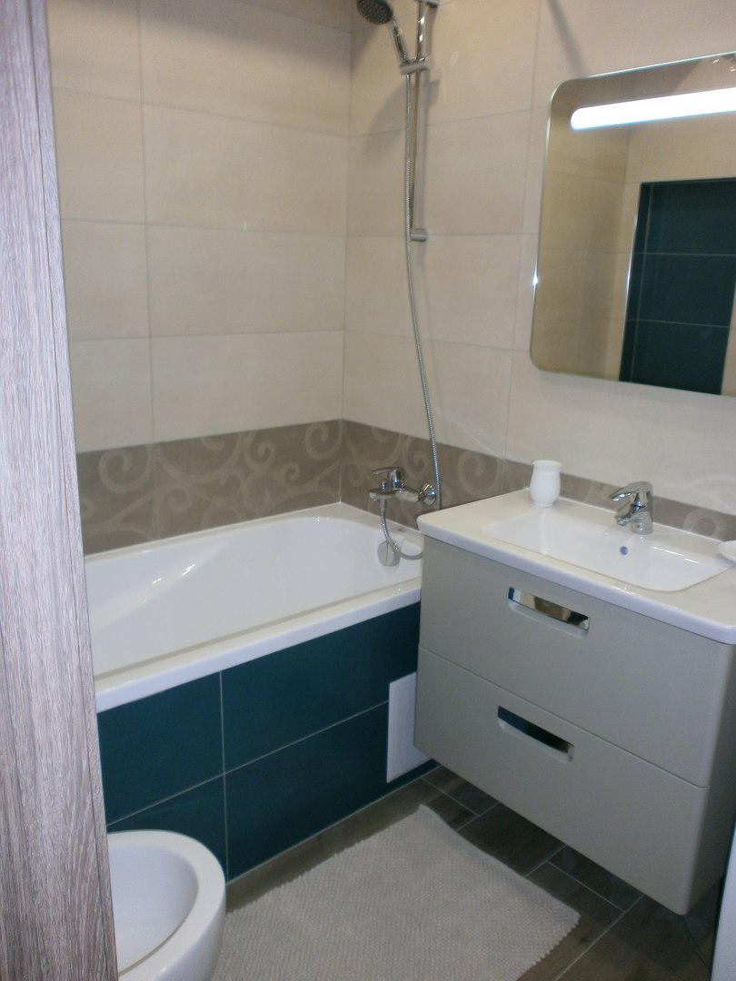евро-ремонт, встроенная кухня, современная мебель, кондиционер, wifi, холодильник, стиральная машина автомат, телевизор, ламинат, бойлер, двух спальный диван, ванная, стекло-пакет, балкон-застеклен, отличное состояние, на длительный срок.