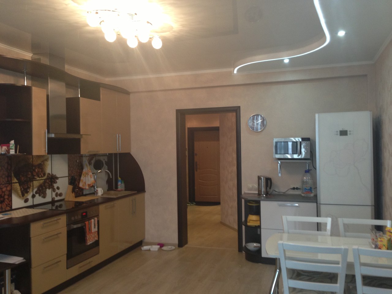 Новострой, современная мебель и техника, полы ламинат, натяжные потолки, встроенная кухня, микроволновая печь, два жк-телевизора, в спальне широкая двуспальная кровать с ортопедическим матрасом, стиральная машинка-автомат, угловая ванна, отличное месторасположения, рядом море.