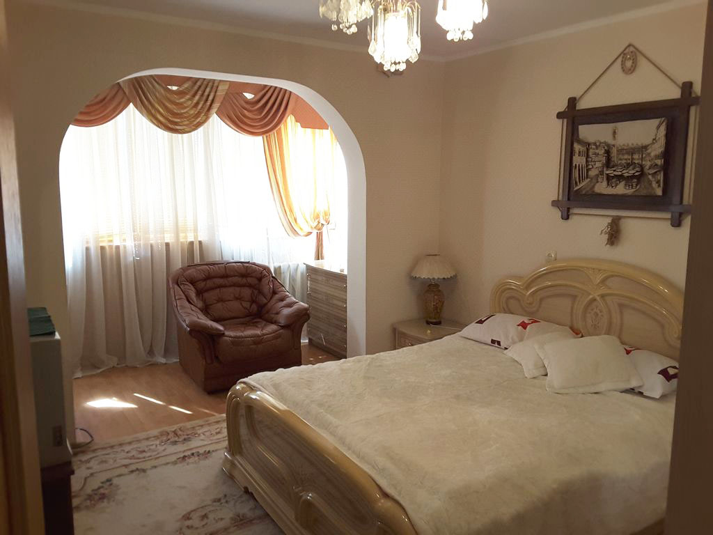 Сдается трехкомнатная квартира студия на ул Меньшикова (рядом с ТЦ Новус). 5/12 этаж. Две изолированные спальни. Большая гостиная студия. Дорогой ремонт. Современная мебель и техника: встроенная кухня, две двухспальные кровати, кожаная мебель. Кондиционер, две стиральных машины, бойлер, два телевизора.
