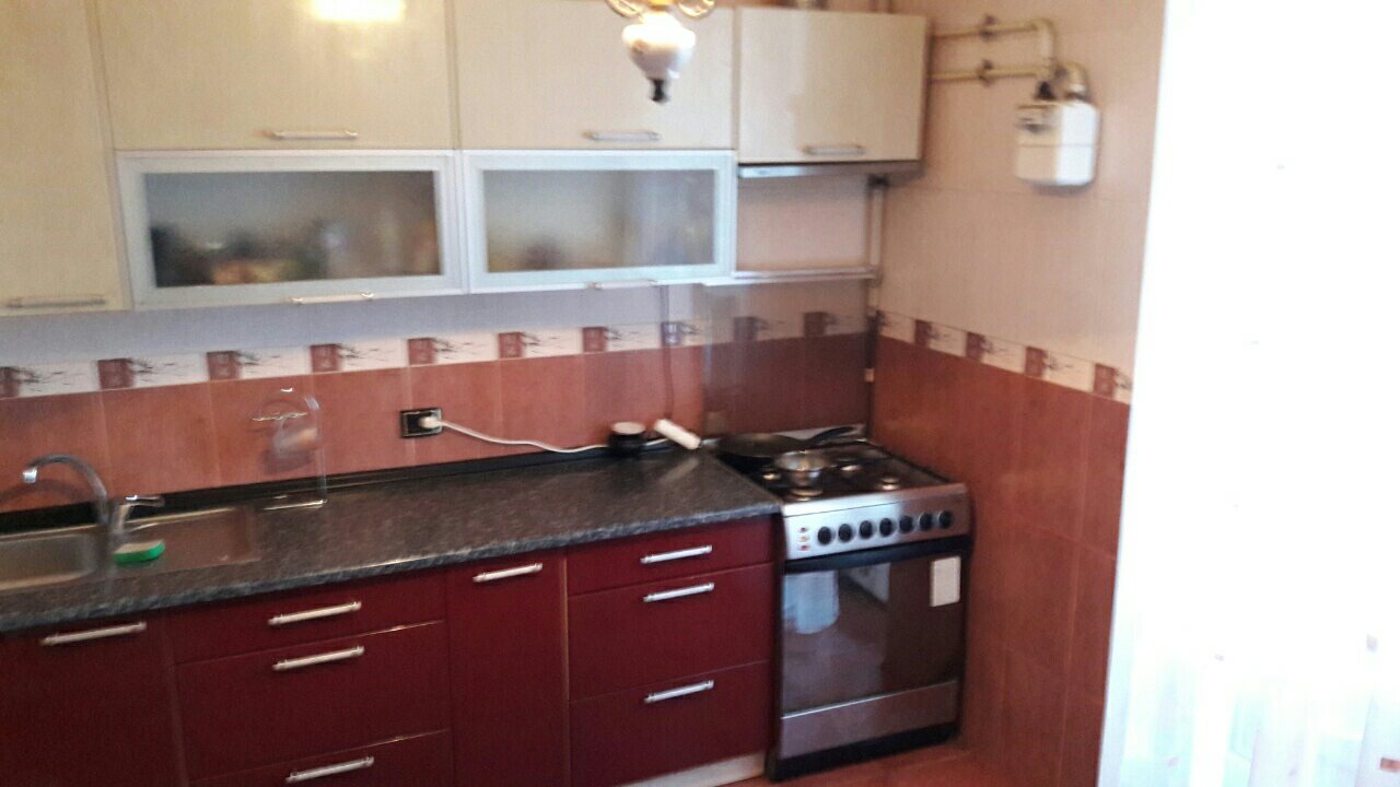 современная мебель, встроенная кухня, колонка, холодильник,стиральная машина автомат, телевизор,двуспальная кровать с ортопедическим матрасом,двух спальный диван, комнаты-раздельные, стекло-пакет, отличное состояние, на длительный срок.