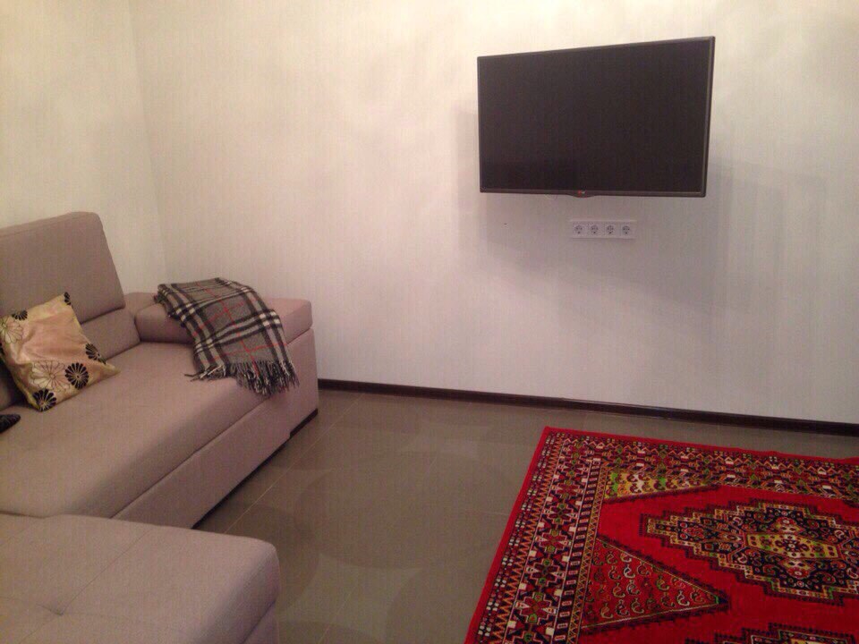 встроенная кухня, современная мебель, зал студио, кондиционер, телевизор(плазма), холодильник, стиральная машина автомат, двух спальный диван, натяжной потолок, полы с подогревом, автономное отопление котел, ванная, стекло-пакет, отличное состояние, на длительный срок.