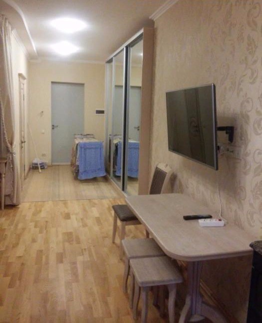 зал студио с кухней, современный ремонт, встроенная кухня, кондиционер, wifi, микроволновая печь, электро чайник, стиральная машина автомат, холодильник, телевизор(плазма), двух спальный диван, двух спальная кровать с ортопедическим матрасом, зеркальный шкаф купе, угловая ванная, ламитнат, гардеробная, отличное состояние, на длительный срок. квартира в самом центре города, рядом центральный рынок, детский парк, хорошая транспортная развязка.