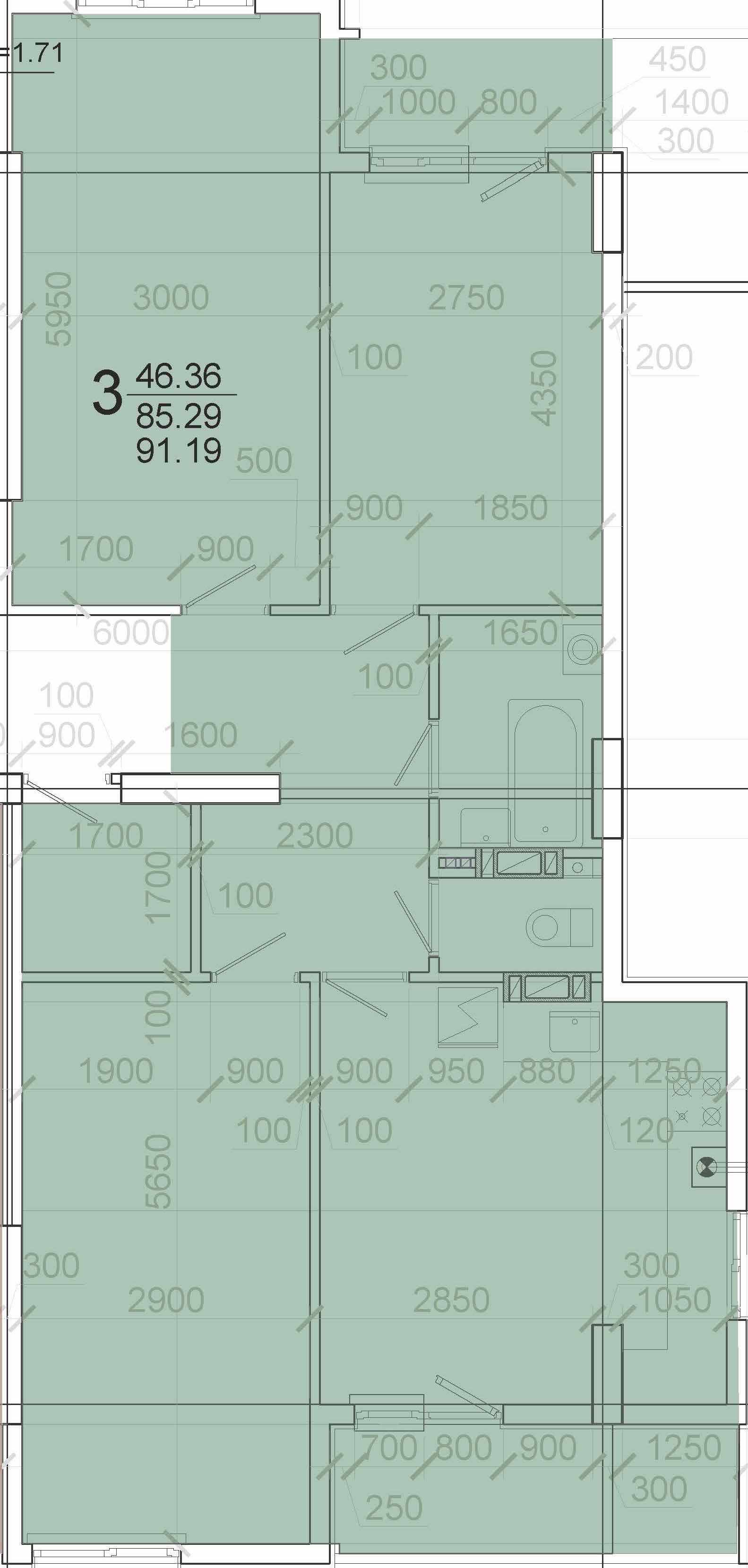 Трехкомнатная квартира 91 кв м на 7 этаже 10-этажного дома (#192782)