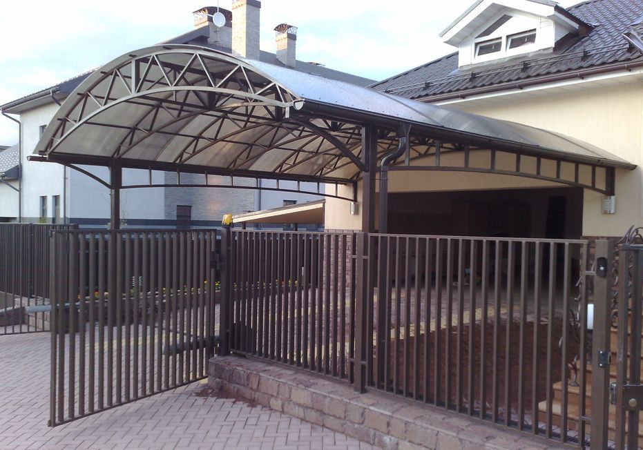 Навесы и козырьки из поликарбоната - это лёгкая и прочная конструкция, изготовленная из металлопрофиля разного размера, кровля которой покрыта светопрозрачным сотовым поликарбонатом. Такого рода навес изготавливается любых размеров, разных форм и всяких расцветок по вашему желанию!