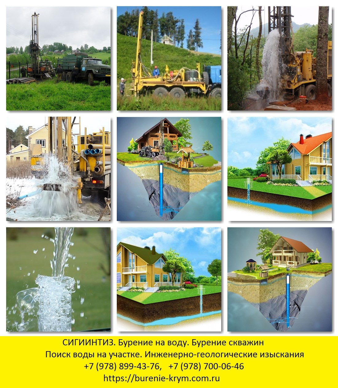 Бурение (Крым, Симферополь, Севастополь), выполненное профессионалами опытнейшего в Крыму предприятия «СИГИИНТИЗ»- это надежное и качественное бурение скважин на воду, гарантии, полное сопровождение и консультации по любым вопросам, касающимся бурения в Севастополе, Симферополе, Крыму.