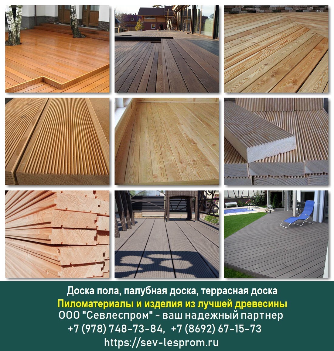 Компания «СевЛесПром» является крупным изготовителем таких важнейших стройматериалов как половая доска, палубная доска, террасная доска (Севастополь, Крым). Мы гарантируем отличное качество пиломатериалов, реальные конкурентные стоимости благодаря тому, что доска пола, палубная доска, террасная доска изготавливаются из хорошего сырья на собственном технологичном оборудовании. У нас вы можете купить половую доску, а также террасную доску купить, палубную доску по оптимальным ценам от изготовителя с доставкой по Севастополю, Крыму, а также другим регионам России.