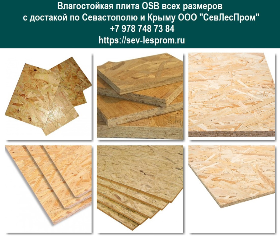Если вам необходима осб плита- купить в Севастополе этот проверенный и недорогой стройматериал приглашаем на нашем предприятии «Севлеспром». Мы предлагаем наиболее востребованный вид- osb-3. Данная osb плита является многоцелевой, обладает влагостойкими характеристиками, применяется как в конструкционных целях, так и для утепления, отделки, для наружных и внутренних работ. На осб цена у нас оптимальная и экономически оправданная, мы не предлагаем купить осб плиты недорого, озадачивая отдельной высокой платой за доставку либо «плавающим» прайсом. Если вы решили у нас купить осб плиту- цена строго соответствует прайсу, выгодное предложение (для оптовиков, строительных бригад, кровельщиков, производителей мебели) не скрывает в себе никаких неожиданностей, мы предлагаем очень выгодные условия совместной работы и длительное прочное партнерство. Мы дорожим репутацией на рынке, предъявляем очень жесткие требования к своим поставщикам, чтобы наши покупатели имели возможность купить osb (Севастополь, Крым) превосходного качества по честной цене.