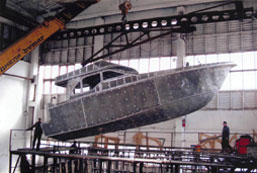 Производственные мощности предприятия позволяют вести строительство моторных яхт от 10 до 45 метров длиной. Материал корпуса – сталь/алюминий.