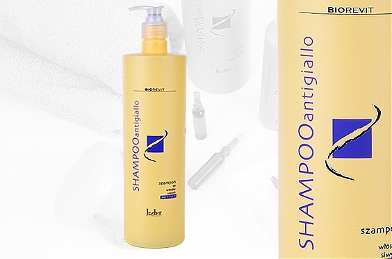 Шампуни SHAMPOOantigiallo и Stop Yellow рекомендуются для ухода за седыми и светлыми волосами. Благодаря содержанию фиолетового пигмента, они нейтрализуют желтизну волос, придавая им платиновый оттенок. К тому же шампунь содержит компоненты, помогающие сохранять форму волос, облегчающие их расчесывание и придающие мягкость и пушистость.