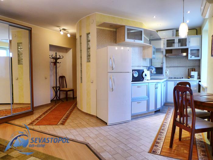 Сдаётся посуточно однокомнатная студия люкс в самом центре Севастополя на улице Советская, дом 5 . Рядом с домом расположены: Владимирский собор, музеи, театры, галереи, магазины, рестораны. В пяти минутах ходьбы площади Нахимова, Лазарева и Приморский бульвар. Окна квартиры выходят в тихий закрывающийся двор, в котором можно оставить машину. С балкона открывается живописный вид на Севастопольскую бухту. В квартире все удобства: холодная и горячая вода, кондиционер, кабельное ТВ, Wi-Fi Internet, зеркальный шкаф купе, стиральная машина, фен, холодильник, микроволновка, электрочайник, удобная двуспальная кровать и раскладное кресло.